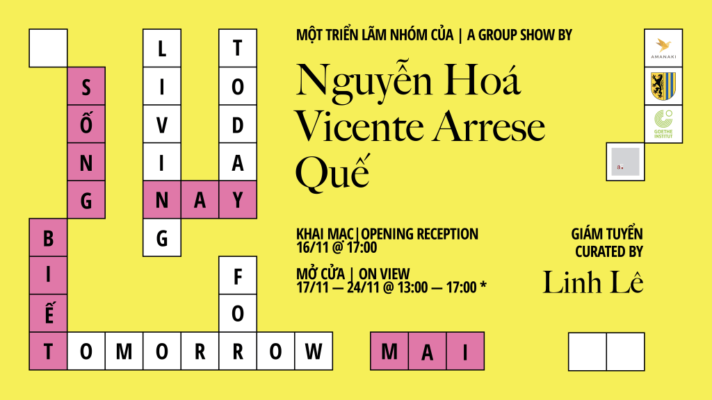 A. Farm is pleased to present ‘Living, today for tomorrow‘, a group exhibition by Nguyen Hoa, Vicente Arresse and Que curated by Linh Le. The exhibition features works created by the three artists during their three-month residency, which started at the beginning of September 2024.
