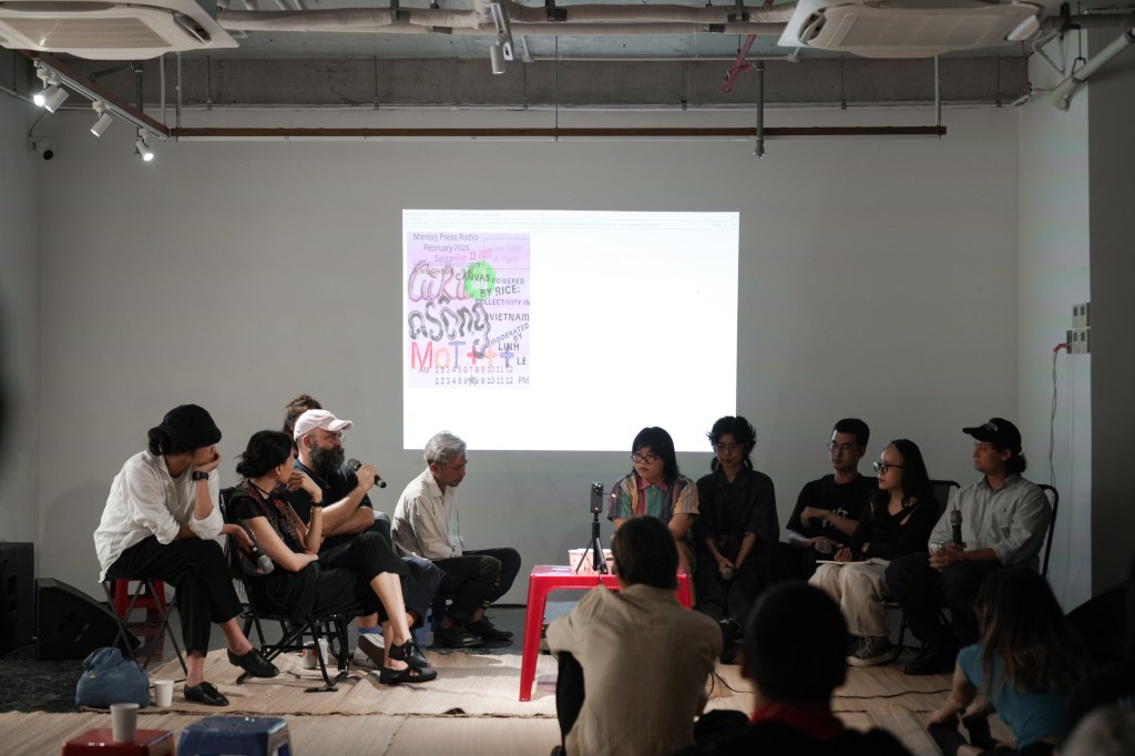 At 7:00 PM, a roundtable discussion will take the form of a playful game of Two Truths and a Lie, featuring collective members of Cù Rú | Sao La Art Space, A Sông, and MoT+++, moderated by curator Linh Le.