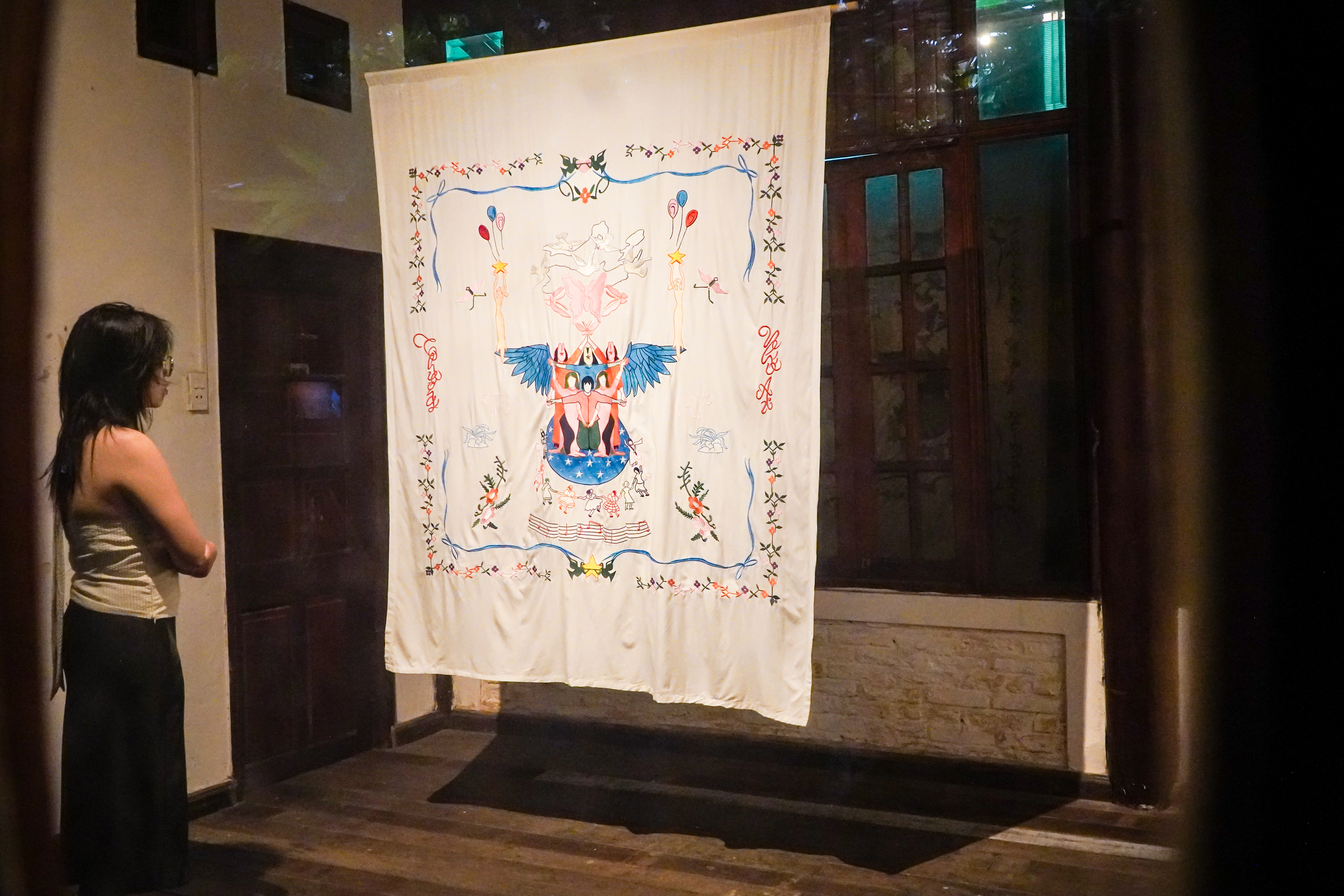 A. Farm and Goethe Institut HCMC are pleased to present ๐จ ๐ซ๐ ๐พ๐ ๐๐ฝ๐ ๐ถ๐ป๐๐๐๐๐๐๐. ๐ฏ๐ฝ๐ ๐น๐ถ๐ ๐๐ถ๐ ๐๐๐๐. ๐ฏ๐ฝ๐ ๐๐พ๐๐ฝ๐ ๐๐๐ ๐๐ถ๐ ๐๐๐๐. ๐ผ ๐๐ถ๐ ๐ถ๐๐๐ถ๐๐ ๐พ๐ ๐๐ฝ๐ ๐ ๐ถ๐๐:.., a duo exhibition by Tรขm ฤแป and Lรช ฤ. Chung curated by Linh Lรช. A gesture marking the end of their three-month residency with us, the show unfolds as an amalgam of thought fragments in which, intuitively and with a dizzying dose of cheekiness, the concept of time surfaces through the artistsโ use of movement, objects, and period-defining mementoes and symbols. Truly a human construct, time in this instance is stretched, punctuated, and folded as they please to make space for speculation and dreaming. Lรช ฤ. Chungโs works attempt to chart an anatomy of eternityโwhat it feels like, what it promises (and inevitably fails to deliver), and whether it ever truly endures or it just disguises itself through a forever repetition of patterns. Meanwhile, Tรขm ฤแป liberates a revolutionary heroine and her personal-turned-historical artefacts from the confines of those seemingly transparent museum glass cases, and in turn re-situates their stories in another setting untethered from grand narratives and ideological agendas.