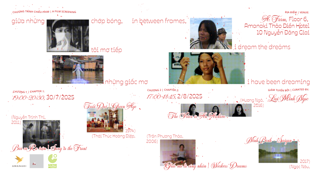 𝓰𝓲ữ𝓪 𝓷𝓱ữ𝓷𝓰 𝓬𝓱ớ𝓹 𝓫ó𝓷𝓰, 𝓽ô𝓲 𝓶ơ 𝓽𝓲ế𝓹 𝓷𝓱ữ𝓷𝓰 𝓰𝓲ấ𝓬 𝓶ơ là một chương trình chiếu phim gồm có hai chương do Lại Minh Ngọc giám tuyển. Chương trình phản hồi tới triển lãm “6 𝓰𝓲ờ 𝓬𝓱𝓲ề𝓾. 𝓝𝓰à𝔂 𝓭à𝓲. Đê𝓶 𝓬ũ𝓷𝓰 𝓭à𝓲. 𝓛ú𝓬 𝓷à𝓸 𝓽ô𝓲 𝓬ũ𝓷𝓰 đ𝓪𝓷𝓰 ở 𝓺𝓾á 𝓴𝓱ứ:..” của hai nghệ sĩ Lê Đ. Chung và Tâm Đỗ.