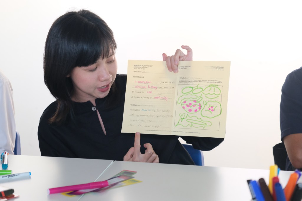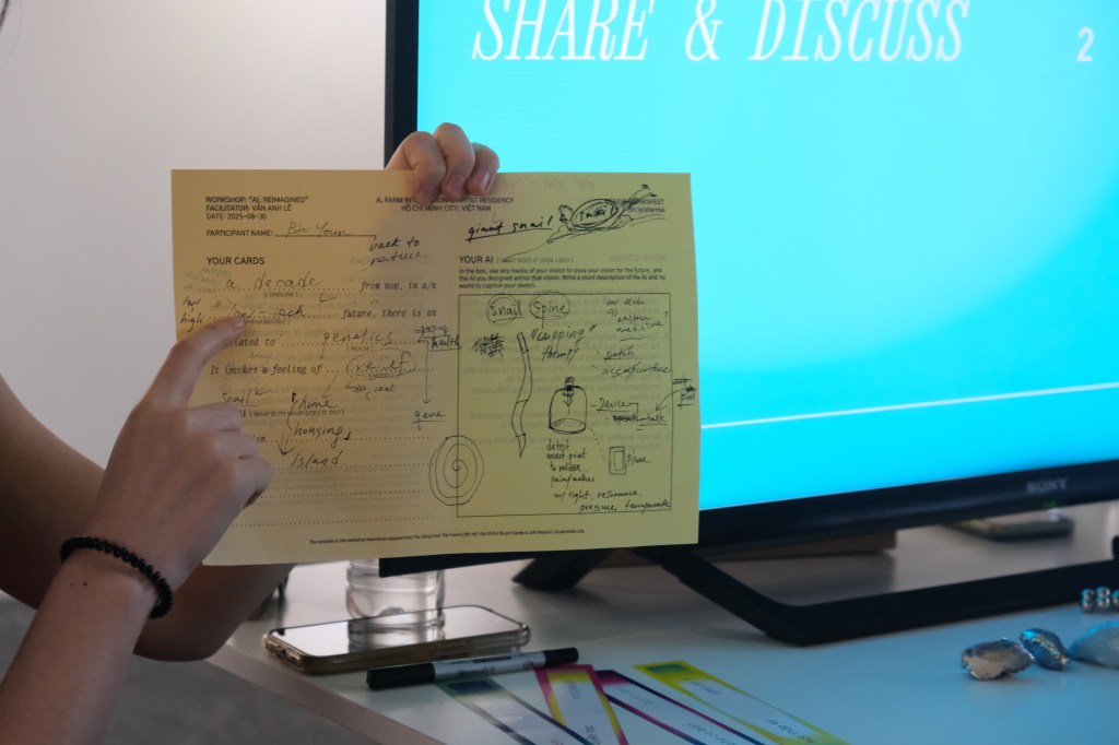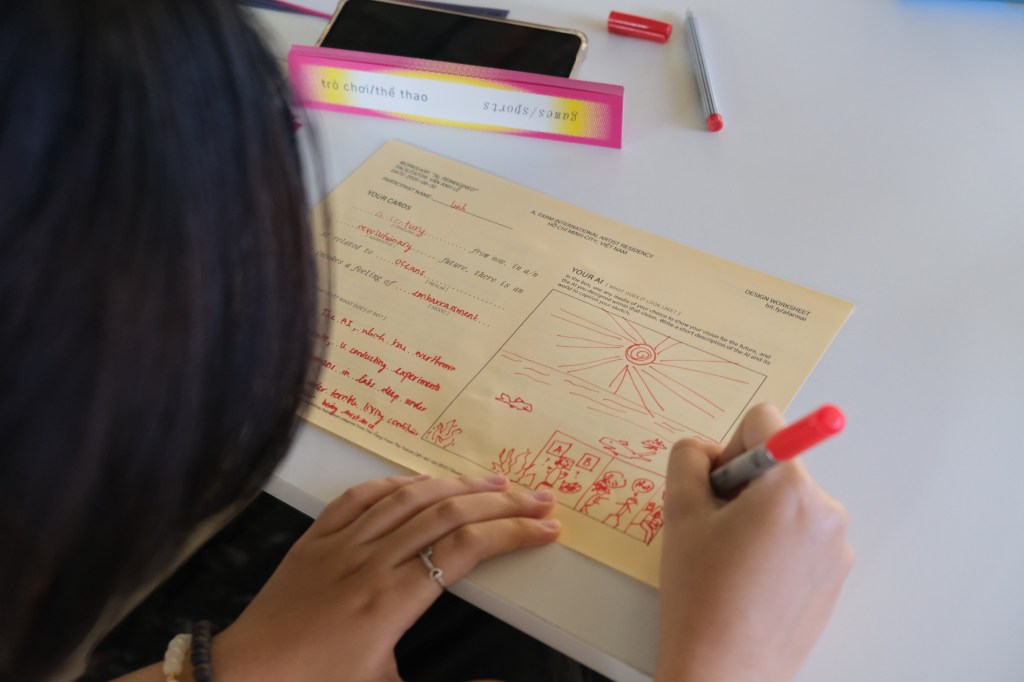 Ai, Reminaged is a workshop led by our August artist-in-residence, Vân Anh Lê, in an attempt to sketch out a technological future where beings and entities are no longer designed by developers and financiers in Silicon Valley, who are seeking to quantify life in order to “turbocharge the global economy“.* Is there something spiritual in our current drive to create an AGI (Artificial General Intelligence)? What does a homegrown AGI look like? What would we build using our own (Viet) beliefs, feelings, and lived experiences as data? What do we want out of an AGI – what aspects of human intelligence or knowledge are we interested in replicating and advancing within the machinic?