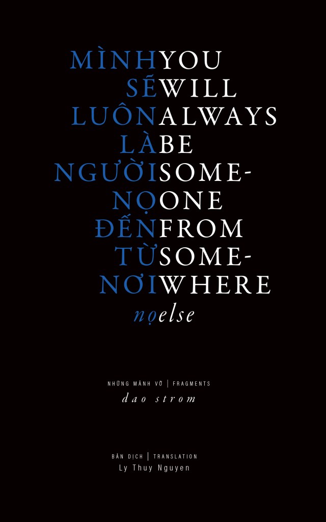 “And you are aware that you are implicated, that your act of reading is involved the continuation and the erasure of memories that do not “belong” to you. In the way mythologies are created, as echoes of knowledge passed on across time and distance, Dao Strom’s book contains this instruction, explicitly named and repeatedly misspelled: “teach them woh to read us, teach meht how to read us, hcaet them how to read us, teach them how to read su.” Self-representing through non-representation, stories that are non-stories, here in there, there in here, You Will Always Be Someone From Somewhere Else reaches where you aren’t.