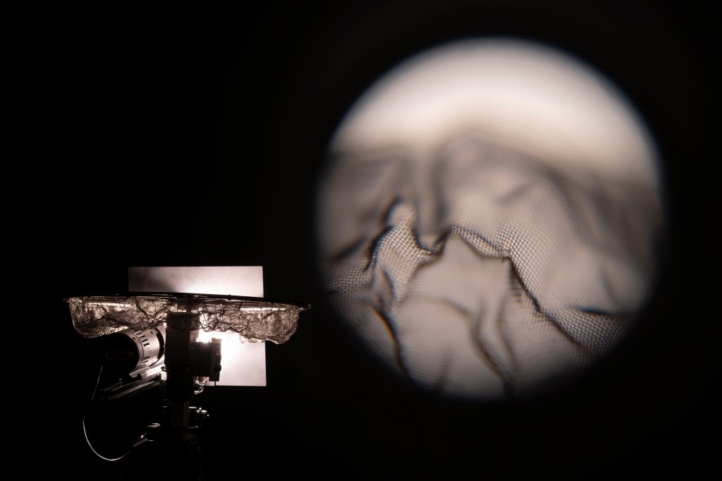 Wire VI /2021/ wire, lens, LED light, metal, tripod/ Dimensions variable